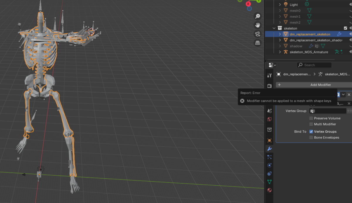 You then have to transfer or redo the weight painting - which is a whole thing. For the purpose of posing you may be able to use the auto generate weight paint feature using the skeleton - this probably wouldn’t be sufficient for compatibility with the games animations, but it will let you manipulate the model.